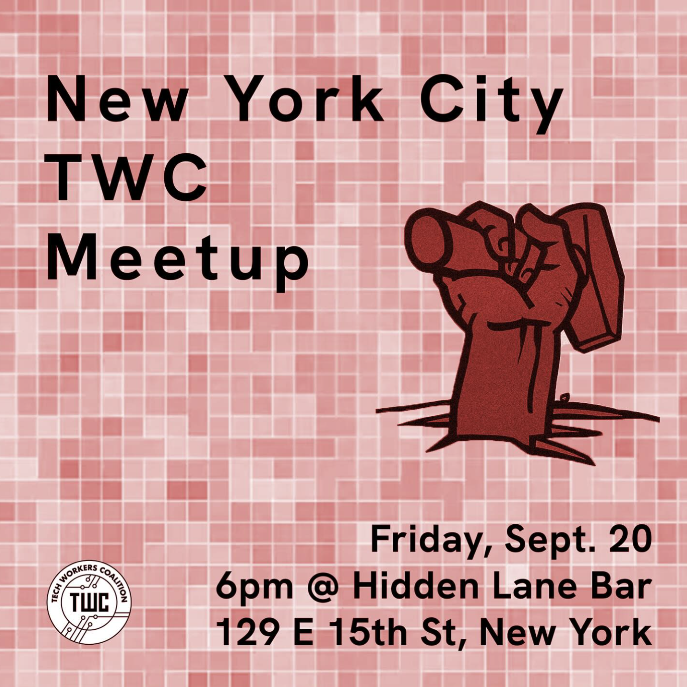 New York 🍎 come hang out soon at our next meetup! We will be meeting at Hidden Lane Bar near Union Square (129 E 15th St, New York, NY 10003).